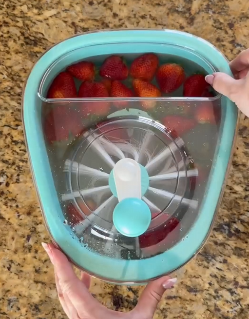 Simply spin the handle to activate the cleaning cycle, quickly removing dirt and residues from your fruits and vegetables with minimal effort.