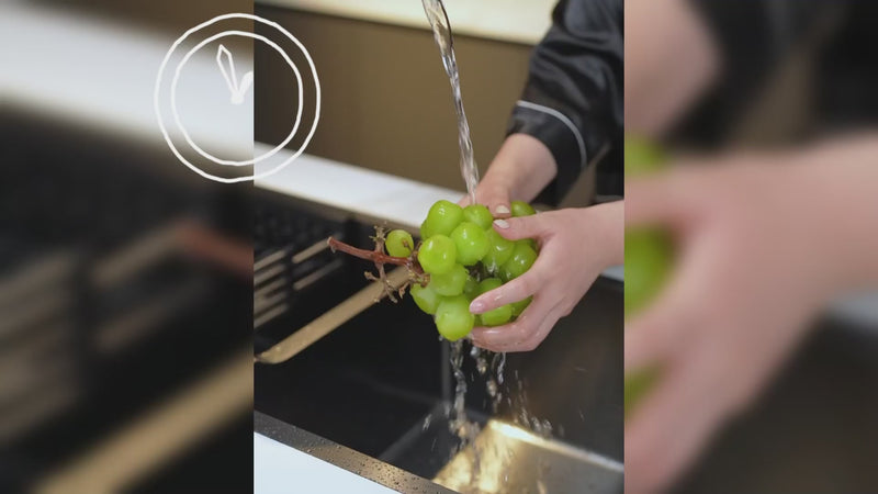 With the 720° scrub cycle, Fruvi™ effectively cleans your produce in just a few seconds, removing pesticides, wax, and other residues effortlessly.