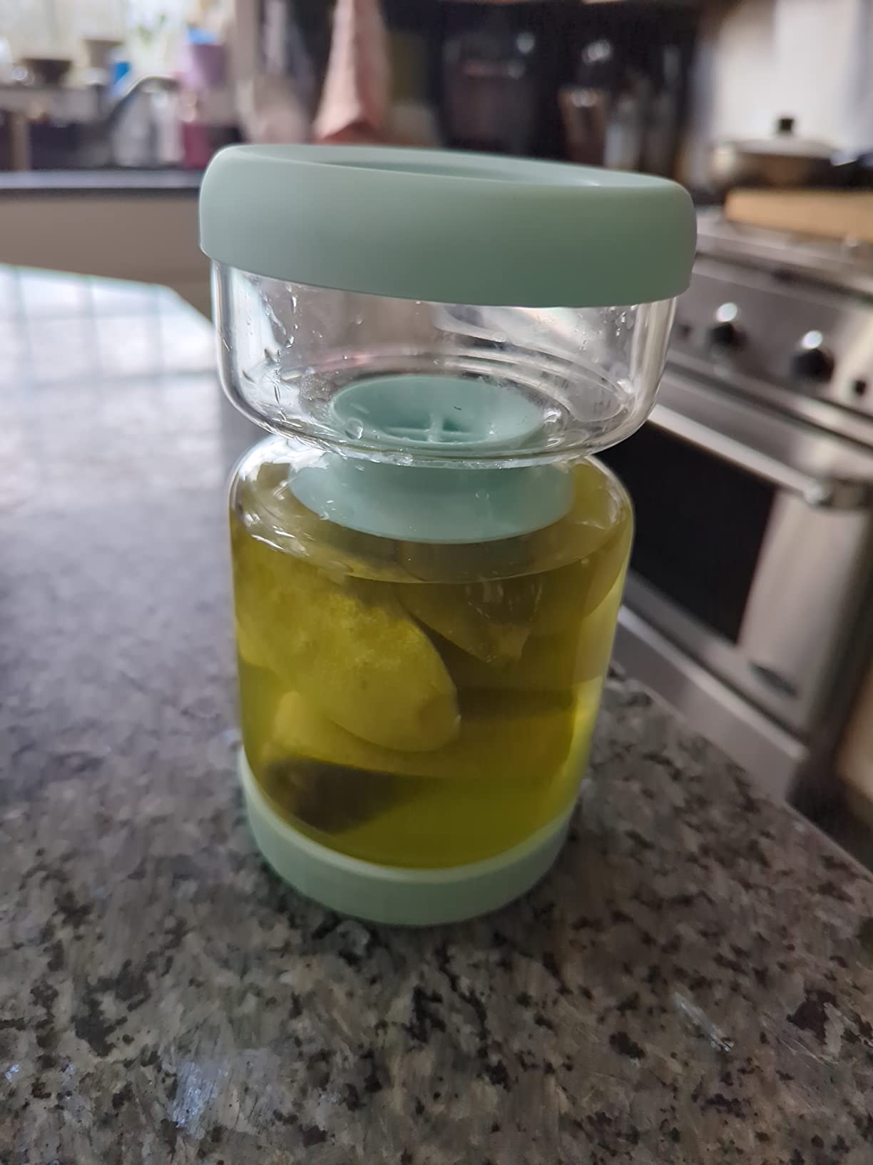The Luvi™ Hourglass Jar is a game-changer for storing olives. No more fishing around in the jar or dealing with messy hands. I love how simple it is to flip and drain the juice. Plus, cleaning it is a breeze. This is a must-have kitchen item!