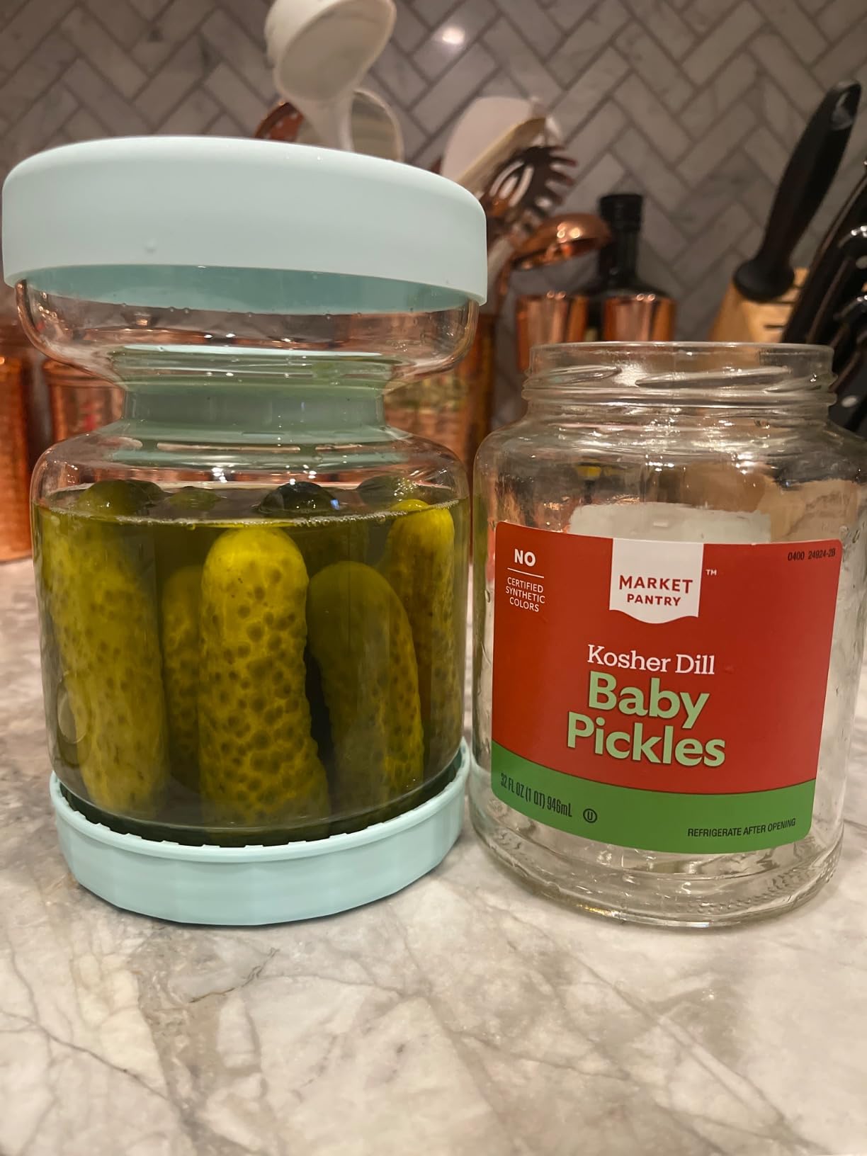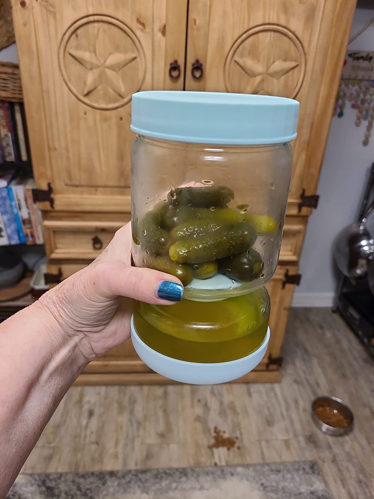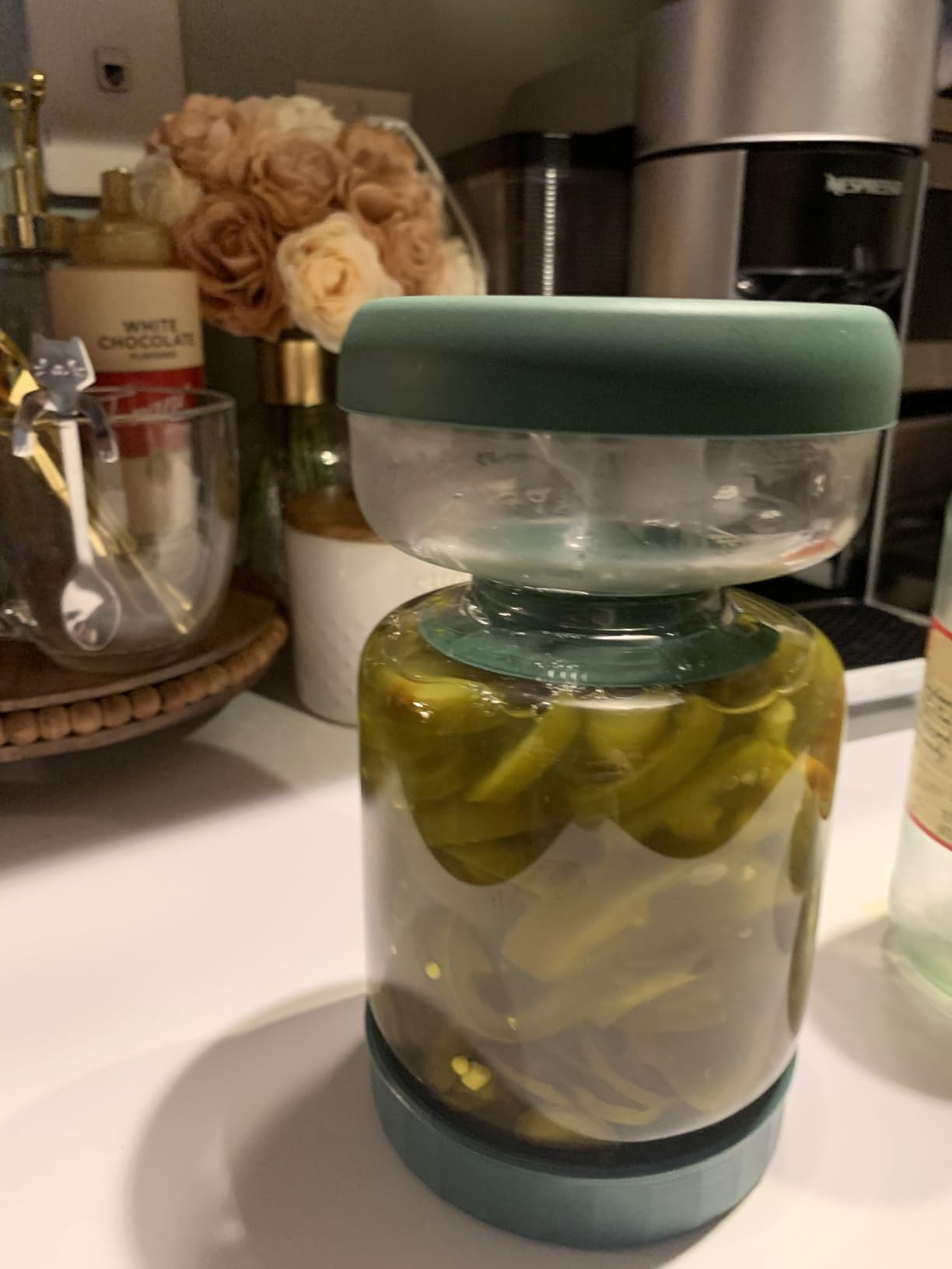 I love this jar! It’s so easy to use and keeps my pickles fresh. The flip design makes it easy to grab what I need without making a mess. The airtight seal means they stay fresh for longer too. Highly recommend this for anyone who enjoys pickled foods!