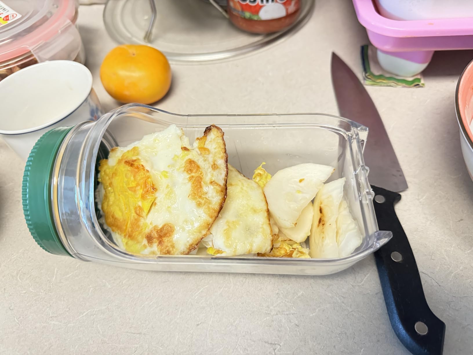 Instead of preparing an entire Tupperware container the night before, I just throw it all in here and I'm good for the day!